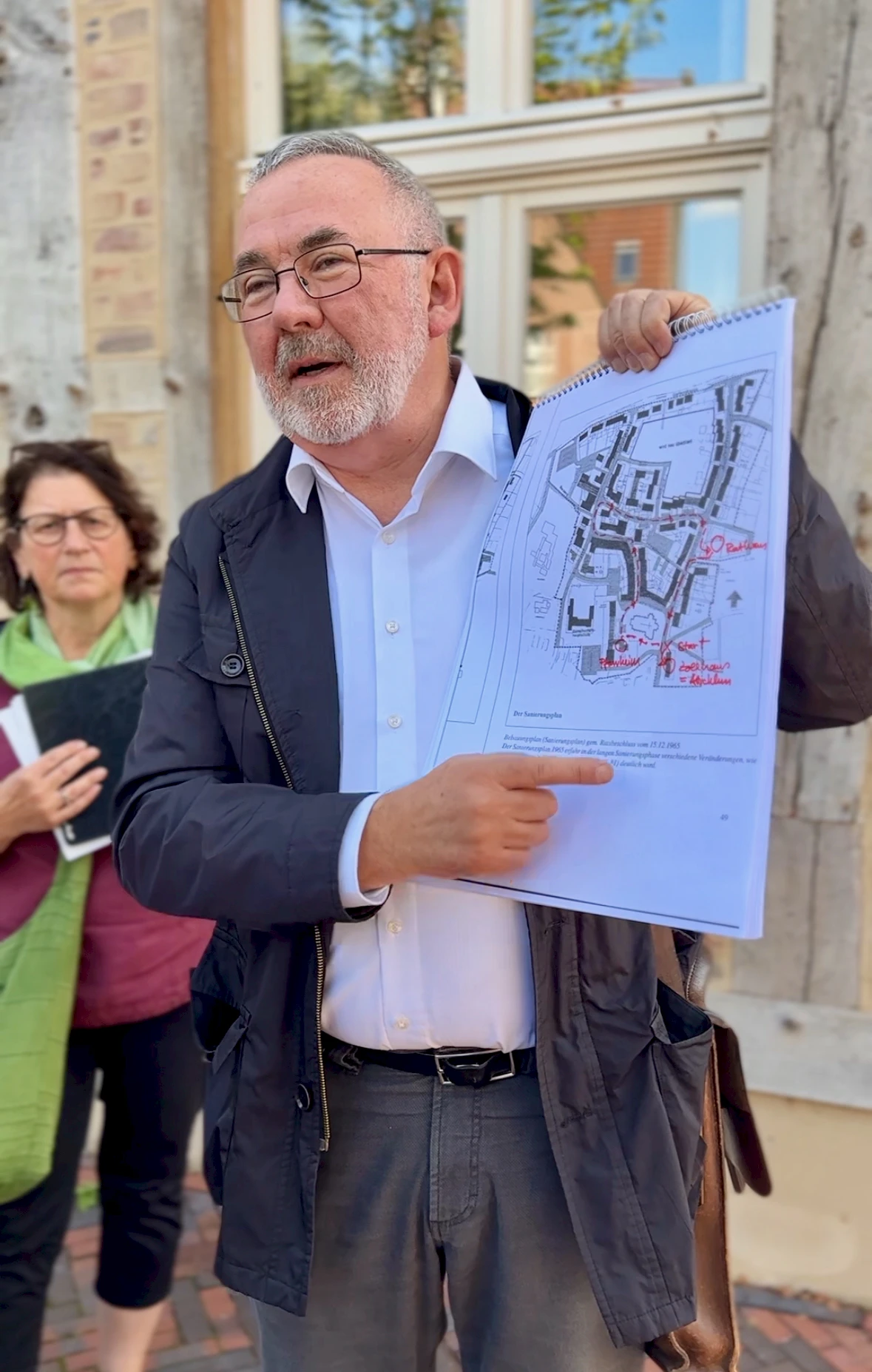 14. September 2024, Senden. Der mehrfach ausgezeichnete Architekt Eckhard Scholz, Mitglied von kommunalen Gestaltungsräten und Gründungsmtglied im Verein WESTFALEN BAUEN KULTUR, hat zu einem Spaziergang der besonderen Art eingeladen: „Entdecke die baulichen Schichten des Sendener Ortskerns“ – ein Thema, das den flüchtigen Blick auf das Gewohnte mit einer tiefgehenden Auseinandersetzung mit Geschichte und Architektur konfrontierte. Scholz, der in Senden lebt, verstand es, den Spaziergang zu einem lebendigen Erlebnis zu machen. Mit alten Fotos, Karten und Dokumenten nahm er die Teilnehmenden mit auf eine Reise durch die bauliche Vergangenheit des Ortes, der vor allem seit den 60er Jahren einen starken Wandel durchlebt hat. Der Fokus lag dabei nicht nur auf der baulichen Gestaltung, sondern auch auf der Sozialgeschichte, die untrennbar mit der Architektur verbunden ist. Denn: „Zur Architekturgeschichte gehört immer auch die Sozialgeschichte“, sagt Scholz.